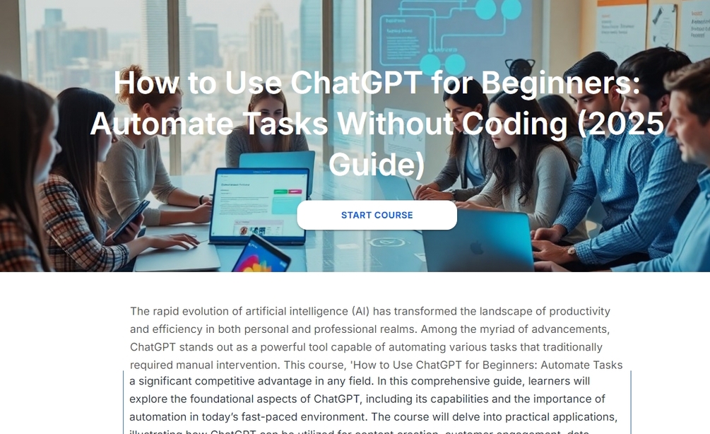Don't get left behind in the AI revolution. Enroll in 'ChatGPT for Beginners' today and unlock your automation potential!